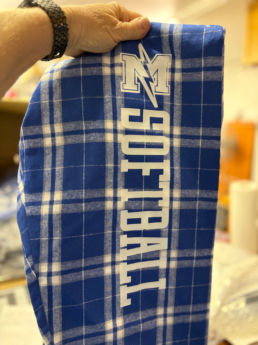 Softball flannel pants with your mascot